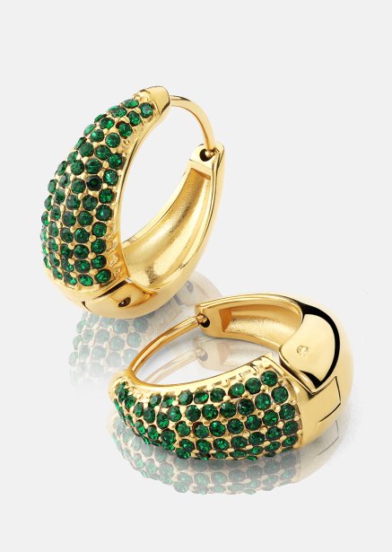 Örhänge Green Crystal Hoop - 18k Gold Plated